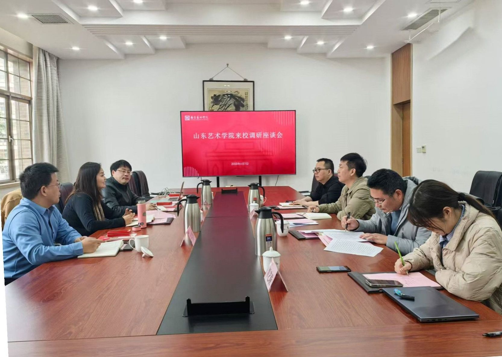 座谈会上观看了南京艺术学院宣传片《至美》。南京艺术学院发展规划与社会合作办公室负责人对我校一行人的到来表示欢迎,介绍了所属部门工作的基本情况。双方就“十五五”规划前期准备、艺术学学科整合、设计学学科交叉融合建设、社会服务分配机制与推进措施、二级校友组织和基金会等方面进行了深入的交流。双方表示,希望今后加强交流,在省部共建和全国综合性艺术院校交流协作会等框架内,进一步加强合作,共同成长,推进两校事业高质量发展。