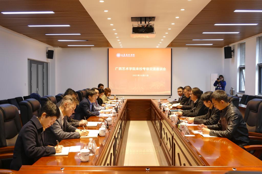 10月21日,广西艺术学院党委委员、副校长伏虎一行5人来我校考察交流。学校党委书记王洪禹、副院长杨西国亲切会见了客人。