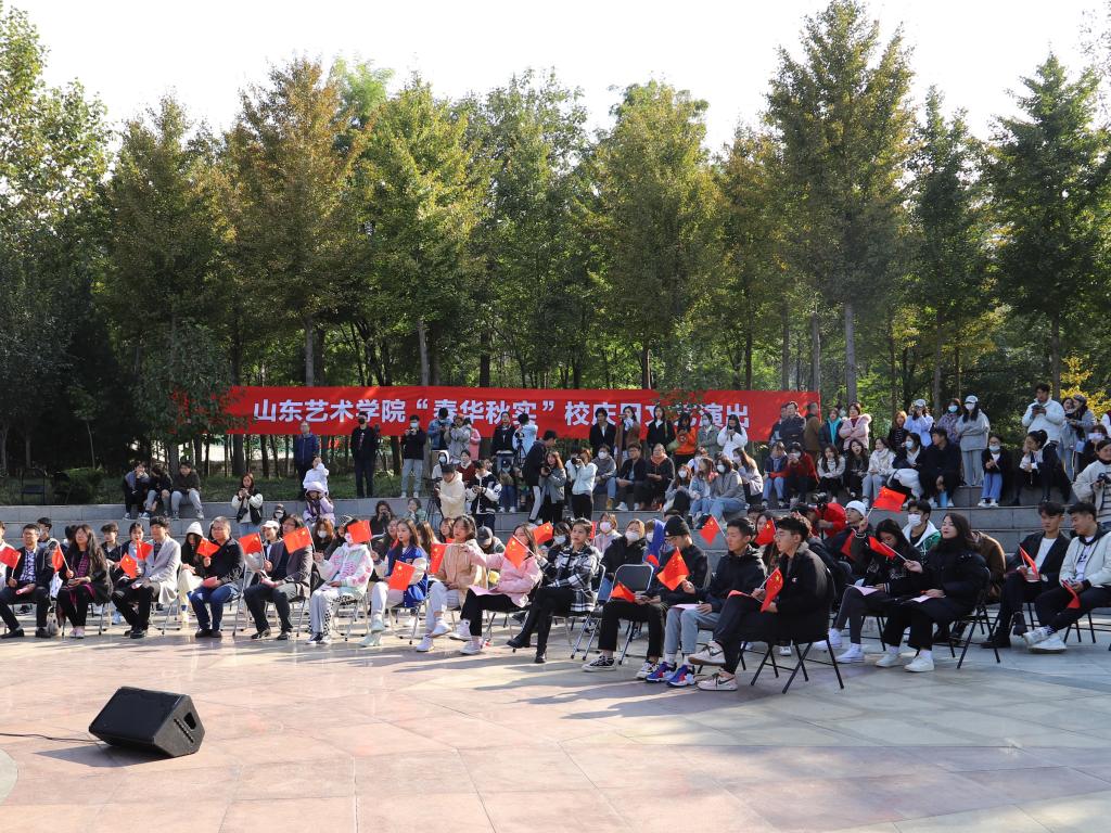 随后,来自二级学院的同学们在校园景观湖畔为大家奉献了一场别开生面的文艺演出。音乐学院带来了男声独唱《永远跟党走》、女生独唱《我爱你中国》,唱响了新时代跟党走、建设社会主义现代化强国的坚定信心;现代音乐学院电声乐队带来的歌曲《英雄赞歌》《不忘初心》,唱出对一代代英雄人物不忘初心、牢记使命,前赴后继、艰苦奋斗的深情礼赞;戏曲学院用一出经典剧目《江姐》的“绣红旗”选段,唱出了中国共产党人对新中国的无限爱恋与坚定的革命意志;戏剧学院演绎了经典话剧《雷雨》《日出》的部分片段,现代音乐学院带来了精彩的萨克斯重奏。山艺学子以精湛的专业所学和饱含深情的精彩演绎,讴歌山艺历史,弘扬山艺文化,彰显六艺育人成果,振奋师生校友精神,为学校63年华诞献上了青春的祝福和美好的祝愿。