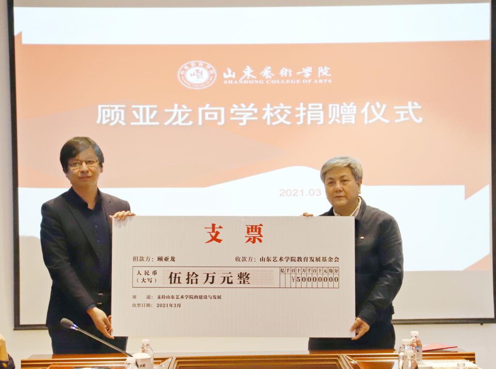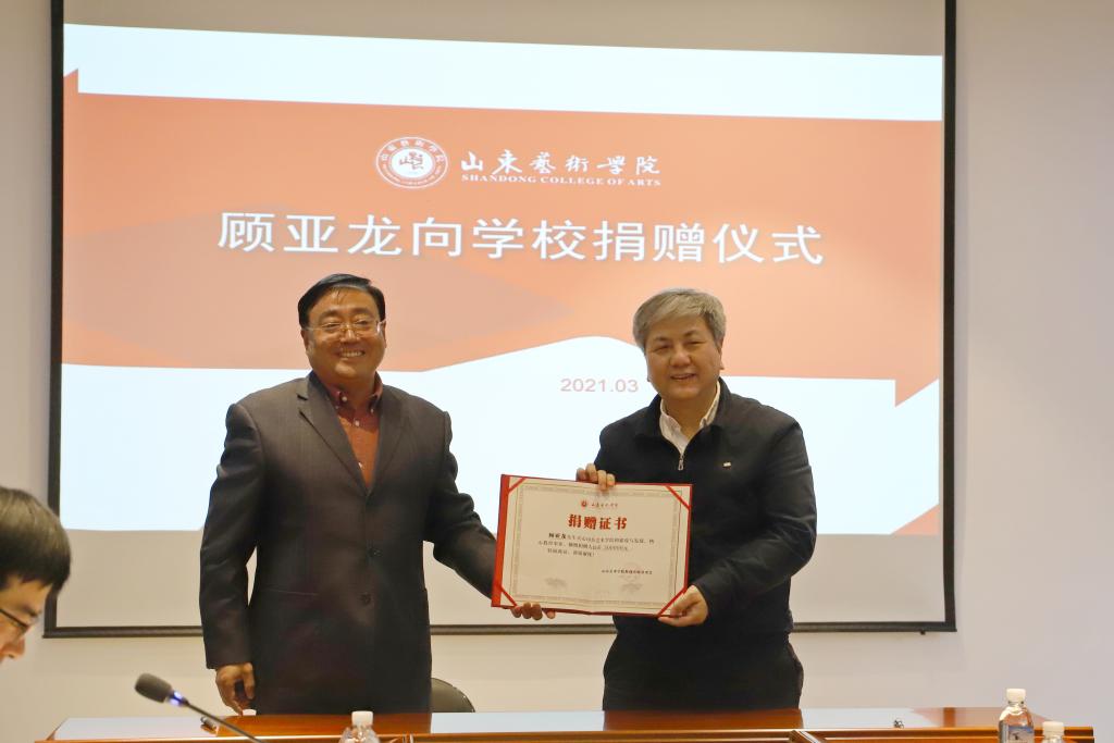 3月26日,顾亚龙向学校捐赠仪式在长清校区举行。学校党委副书记、教育发展基金会理事长孔祥华,中国书法家协会副主席、山东省文联副主席、山东省书法家协会主席、我校书法学院院长顾亚龙,党委委员苏茂兴出席捐赠仪式。