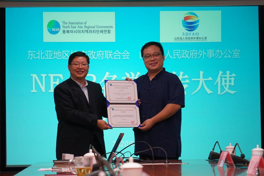 据悉,东北亚地区地方政府联合会是由中国、日本、韩国、朝鲜、蒙古、俄罗斯6个国家78个省级地方政府组成的地方政府间合作机构,成立于1996年9月,山东省是最早加入联合会的地方政府之一。为加强我省与东北亚地区地方政府间的沟通交流,联合会成员地方政府推选成绩突出、品行优秀的业界人士担任宣传大使,既是一个崇高的荣誉,也是一项重要的使命。宣传大使要切实履行好相应的任务和职责,同时也要宣传好山东,讲好山东故事,为促进交流更深入、合作更紧密、友谊更深厚而不懈努力。