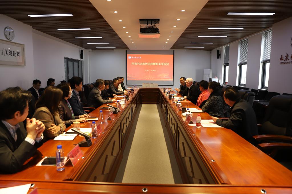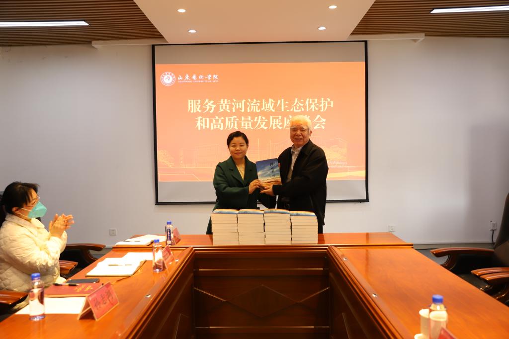 李殿魁向学校捐赠了专著《治水新论》,并作了主旨发言。他全面阐述了黄河和大运河的历史发展过程,勾勒了治黄兴运的前世今生,并结合自己的工作与科研实践,分享了在开展黄河治理、稳定黄河入海口方面积累的丰富经验,围绕守正创新、立足齐鲁大地文化特色、抓住黄河流域主要矛盾等方面提出了进一步做好黄河流域文化工作的意见和建议,使与会人员更加深刻地认识到绿色发展、生态智慧的重要意义和作用。