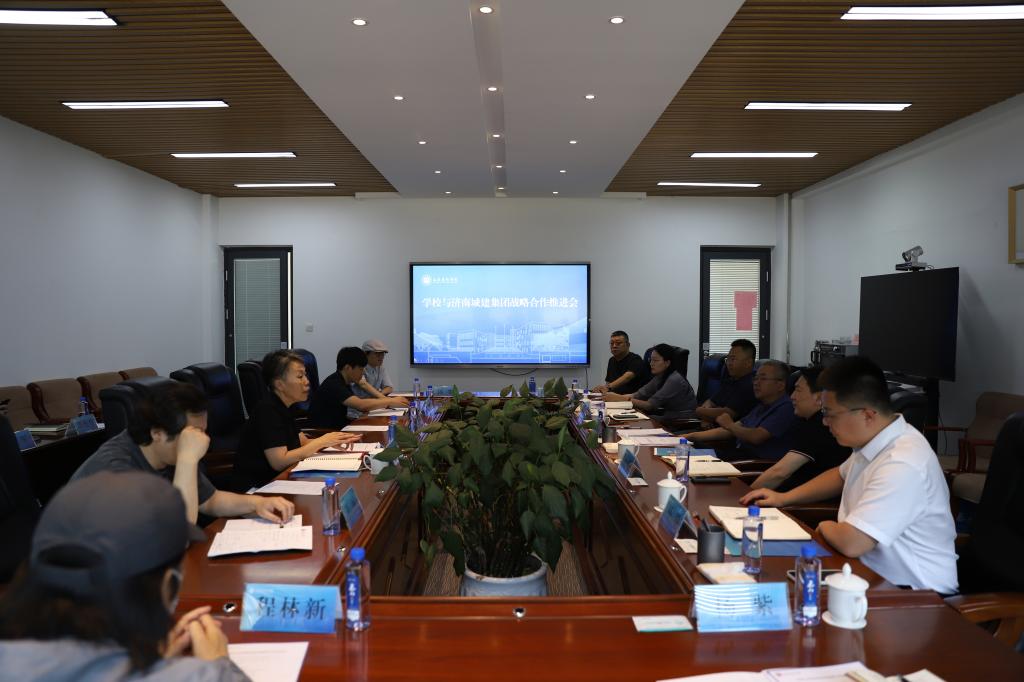 6月15日下午,学校与济南城建集团有限公司战略合作推进会在长清校区召开。济南城建集团有限公司副总经理徐文东,万融产业集团副总经理王强、陆伟,万融产业研究院副院长马瑞,济南城市建设集团副主管杨紫,福仁物业董事长辛向红,我校党委委员、副院长荆雷参加推进会。