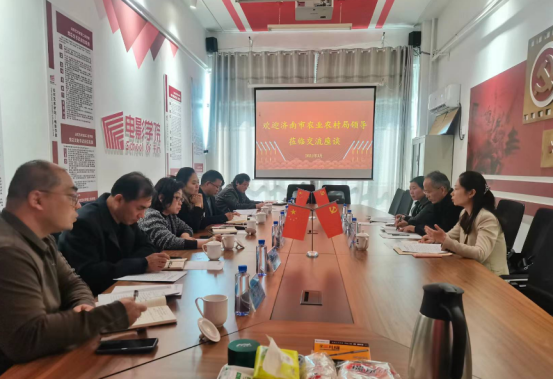 3月14日上午,济南市农业农村局农村社会事业促进处二级调研员金兴海、二级主任科员朱奕颖,科技教育处一级主任科员王艳真来我校调研,并与相关专业教师进行座谈。座谈会由发展规划处处长马磊主持。