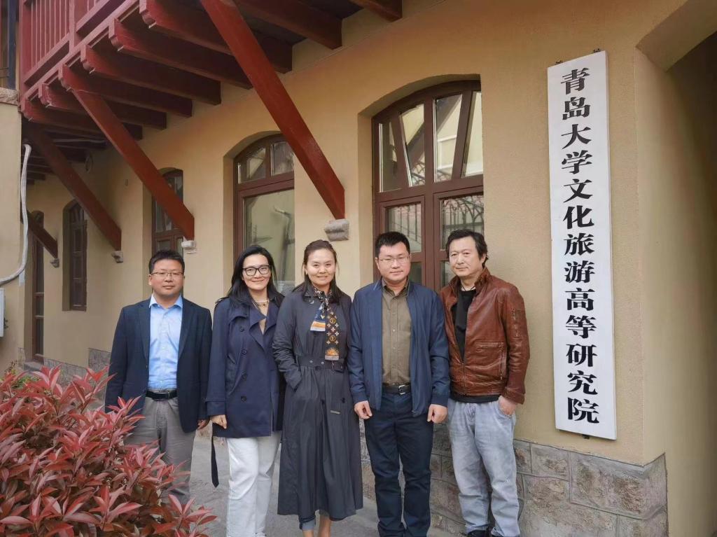 在青期间,马磊一行就近走访了我校艺术管理学院2001级校友——青岛大学文化旅游高等研究院院长马达。马达向大家介绍了在文化和旅游部支持下,甄选国内外文化和旅游经典企业、产品、服务和模式,建立容纳实践精华和案例精品共享平台的情况,对以文化、旅游、休闲等服务业为重点领域,加强横向协同,承担国家标准、行业标准、地方标准研发任务,开展标准推广和培训,谈了自己的体会。他表示,作为山艺培养的学生,非常希望与母校加强联系与合作,以自身专业优势回报母校,助力母校社会服务、合作发展工作向纵深推进。