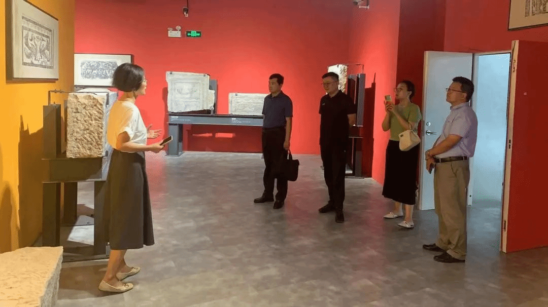 会前,张绪儒一行人参观考察了学校国庆彩车、山东年画雕版博物馆和山东汉画像石艺术馆等艺术馆藏和研学资源。